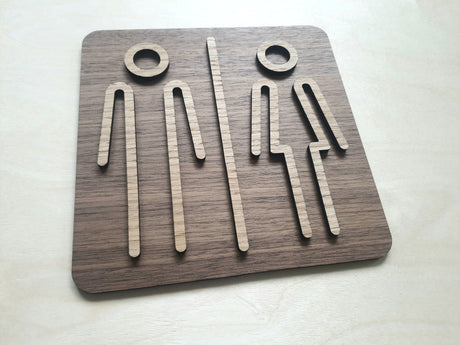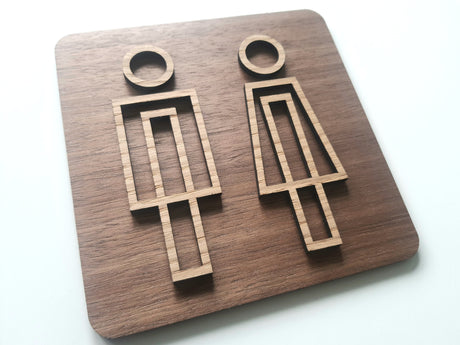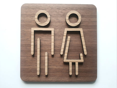 Fra 75,00 krEnhedspris /UtilgængeligElegant Peronale Toilet skilt med Mand og Dame piktogram I valnød- og poppeltræ
